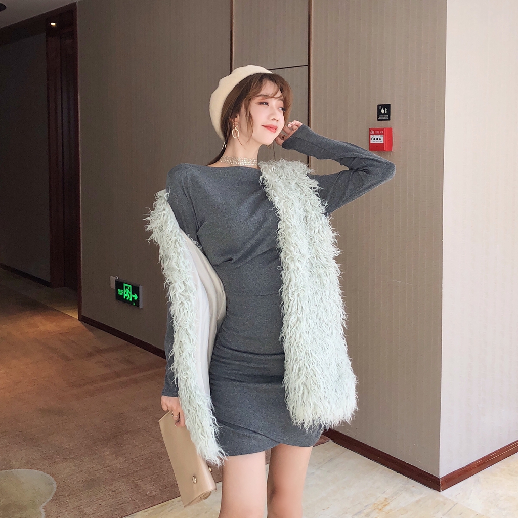 馬甲女秋冬新款中長款顯瘦百搭外套兩件套馬夾褶皺連衣裙時尚套裝