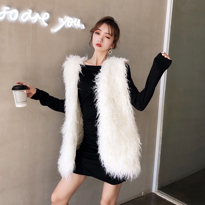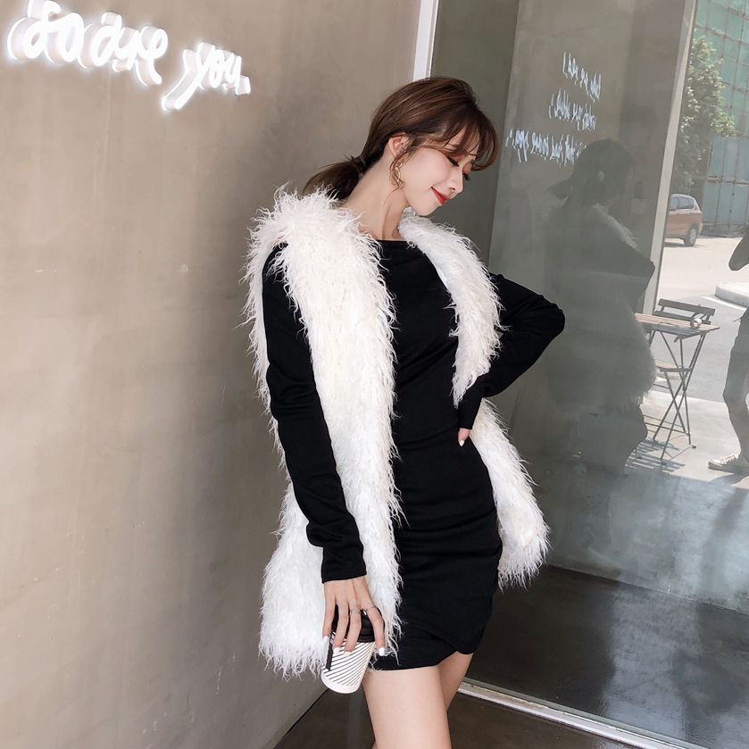 / 馬甲女秋冬新款中長款顯瘦百搭外套兩件套馬夾褶皺連衣裙時尚套裝