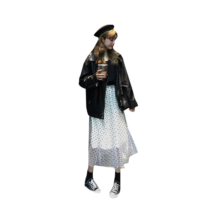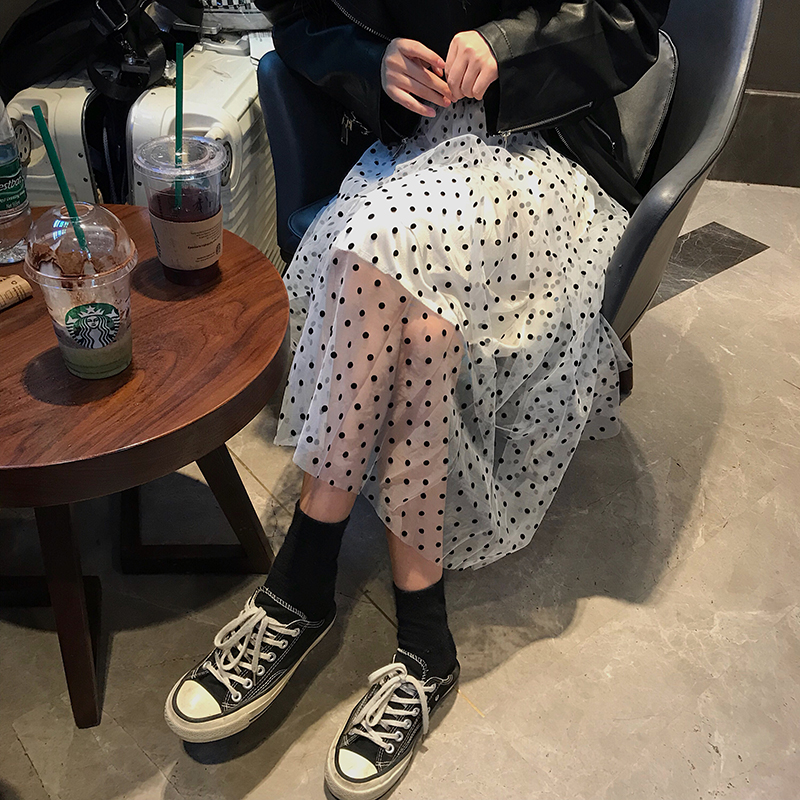 / 2018新款秋季女裝韓版chic波點網紗半身裙學生裙子高腰A字裙長裙