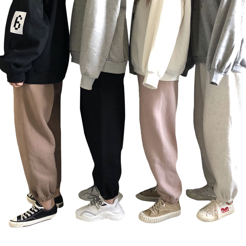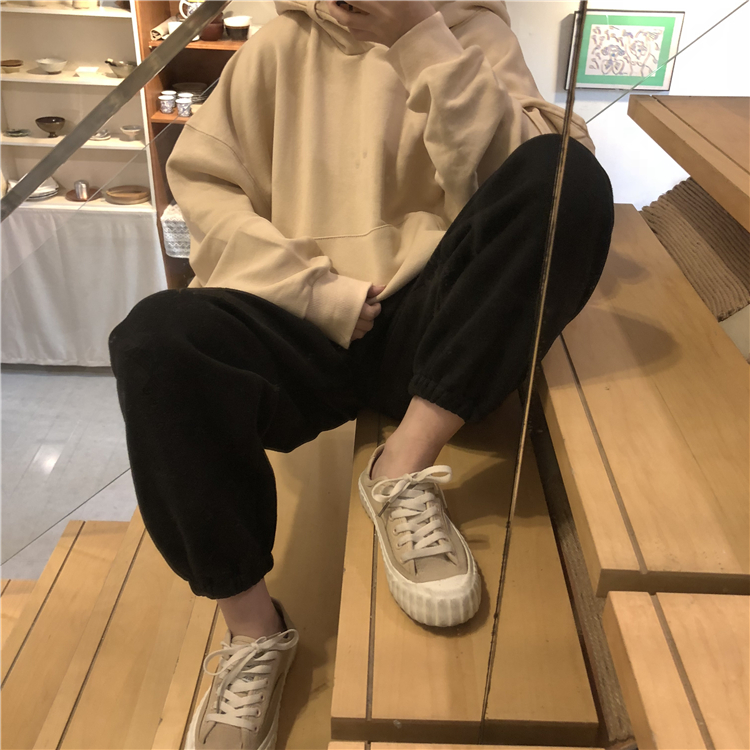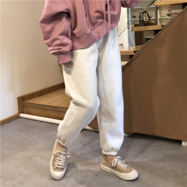 / 秋冬女裝韓版寬松束腳褲松緊腰加絨加厚休閑褲哈倫褲長褲學生褲子