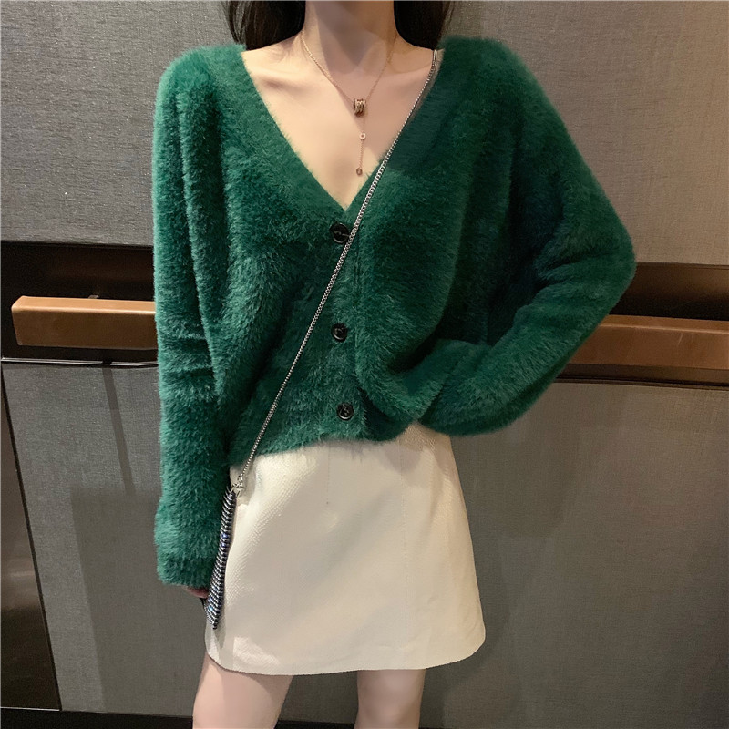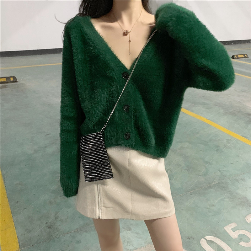 / 新款針織秋冬慵懶寬松短毛衣外套時尚套裝高腰包臀皮裙chic兩件套