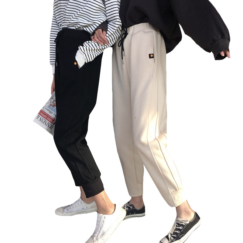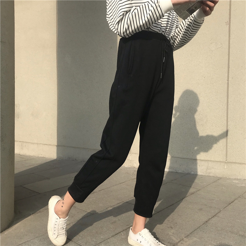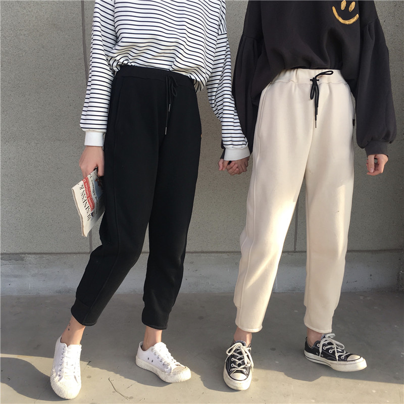 / 秋冬女裝韓版寬松加絨加厚束腳褲哈倫褲高腰休閑褲九分褲學生褲子