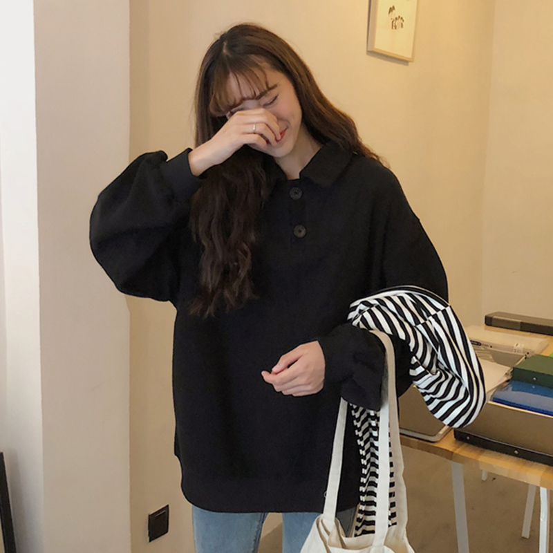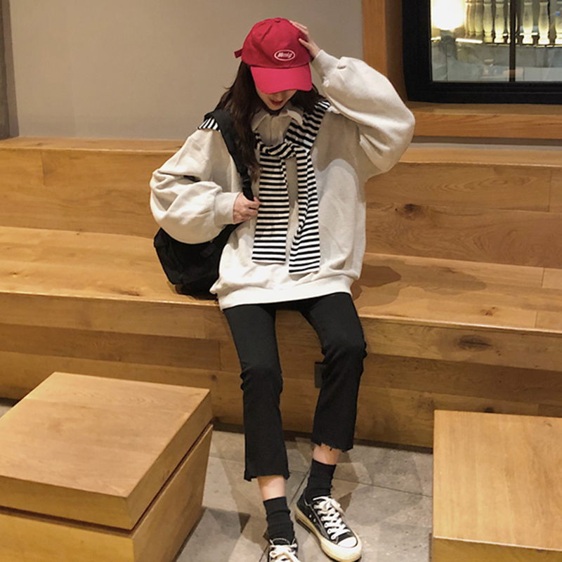 / 御姐套裝女秋冬新款學生時尚寬松長袖黑色衛衣外套條紋連帽披肩潮