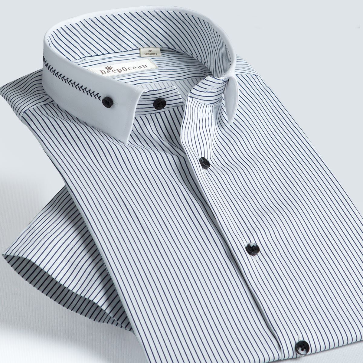 深海夏季中年男短袖襯衫彈力棉修身免燙商務條紋休閑半袖男式襯衫
