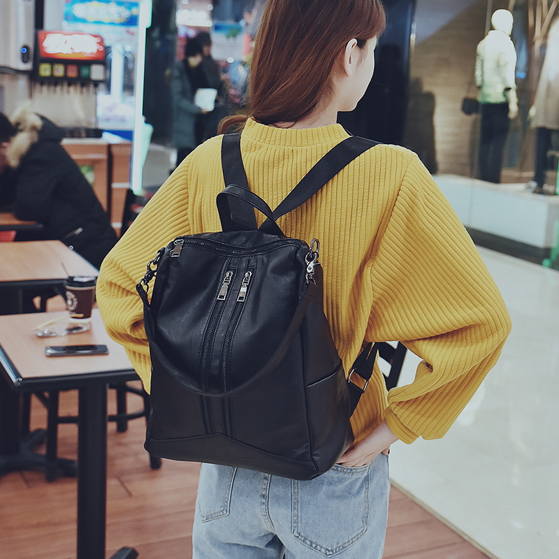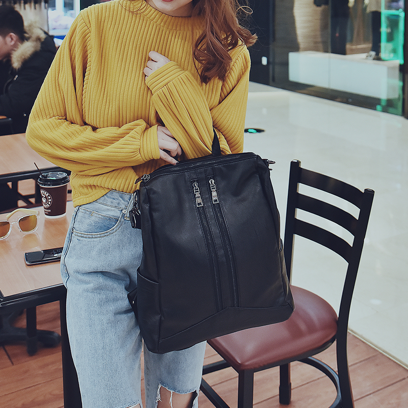 包包新款學院風pu雙肩包女韓版街頭潮流雙肩背包時尚百搭書包