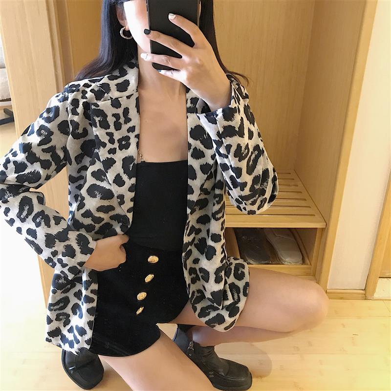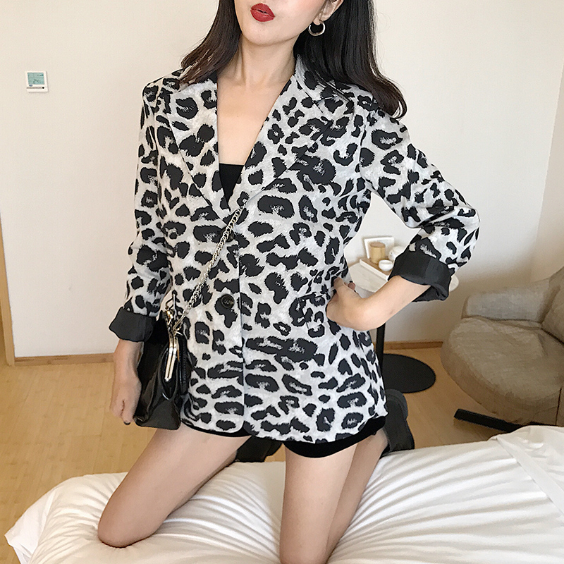 新款豹紋西裝外套女寬松氣質時尚百搭復古chic韓版秋季長袖風衣潮