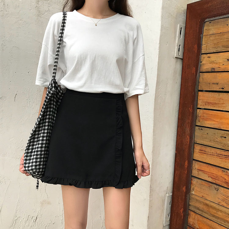 / 夏季女裝韓版木耳荷葉邊A字裙短裙高腰寬松百搭純色包臀裙半身裙