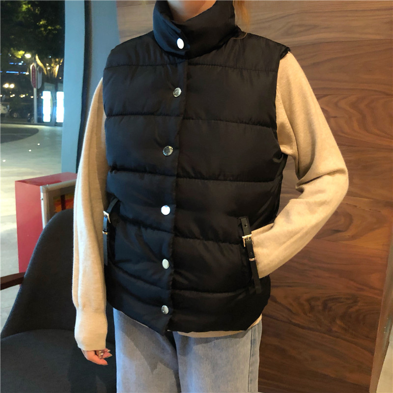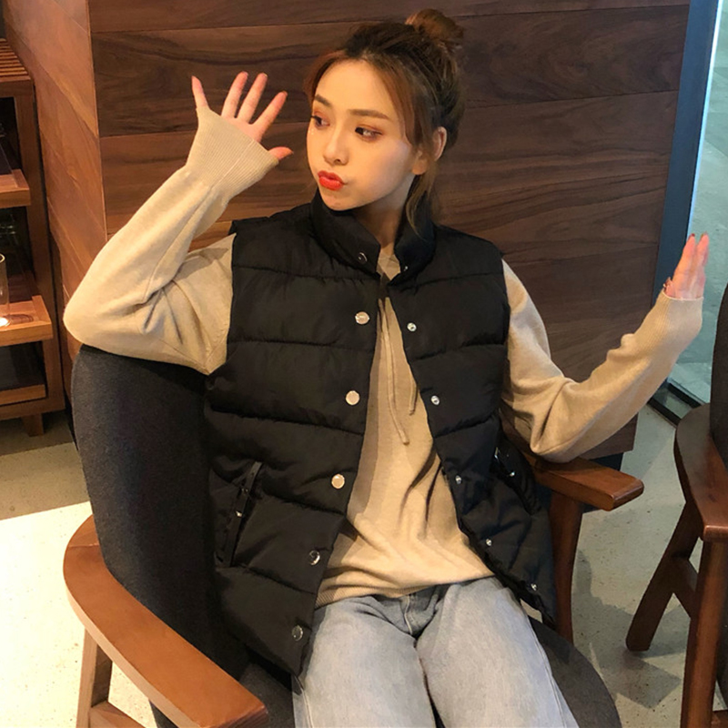 學院風坎肩面包服女冬裝2018新款韓版時尚寬松加厚立領棉衣馬甲潮