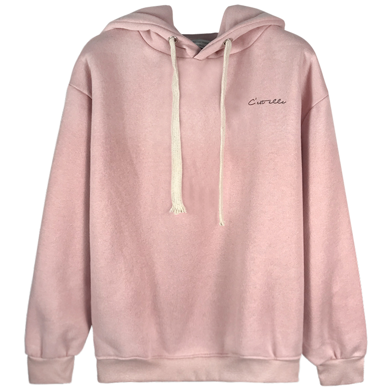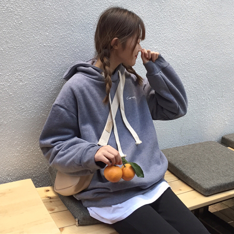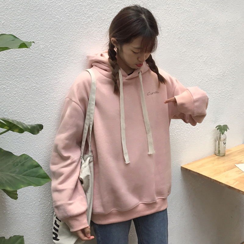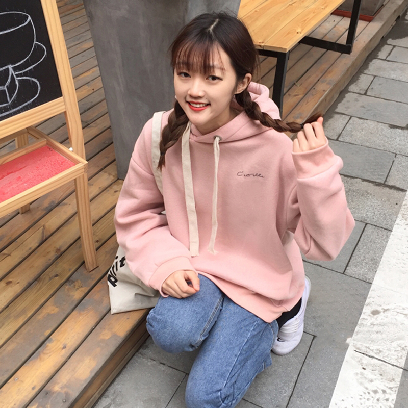 秋冬女裝2018新款字母加絨抽繩連帽衛衣寬松長袖外套學生保暖上衣