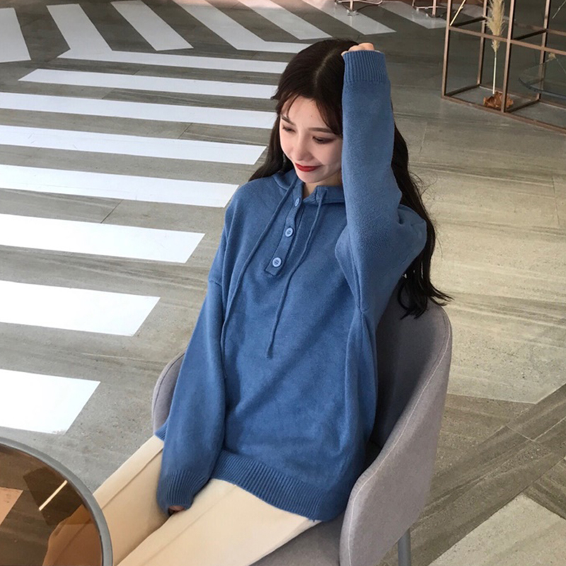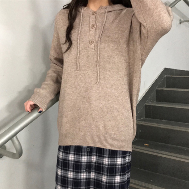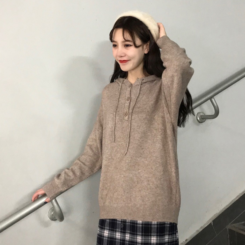 學院風連帽長袖針織衫女秋冬裝2018新款韓版百搭寬松顯瘦毛衣外套