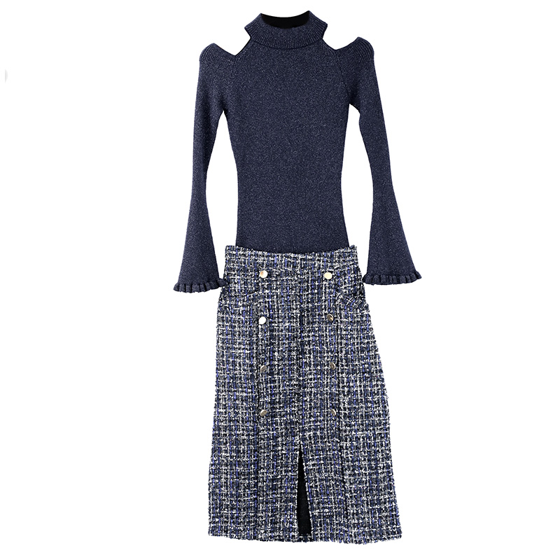 / 女神套裝秋兩件套網紅針織衫上衣氣質初秋套裝裙高腰半身長裙套裝