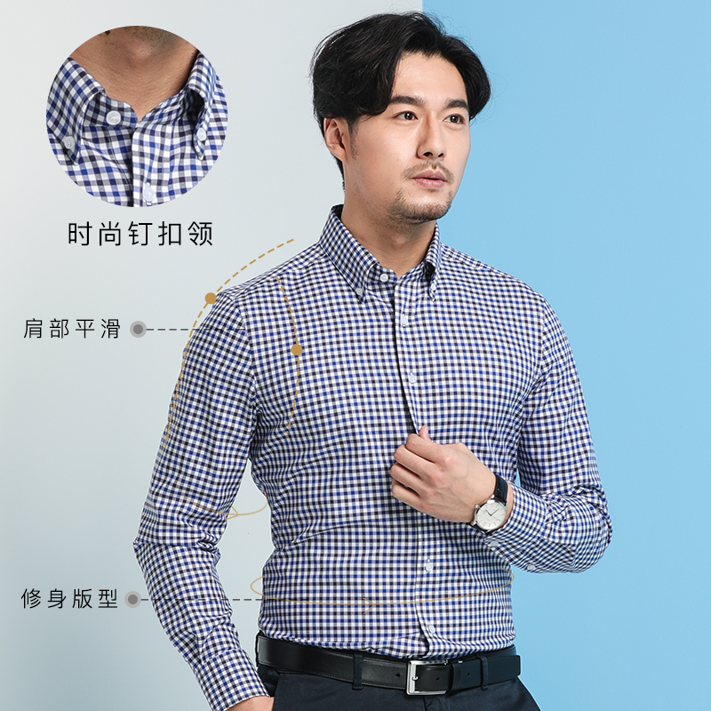 / 秋季格子襯衣男經典格紋復古小格子襯衫男士長袖韓版修身休閑寸衫