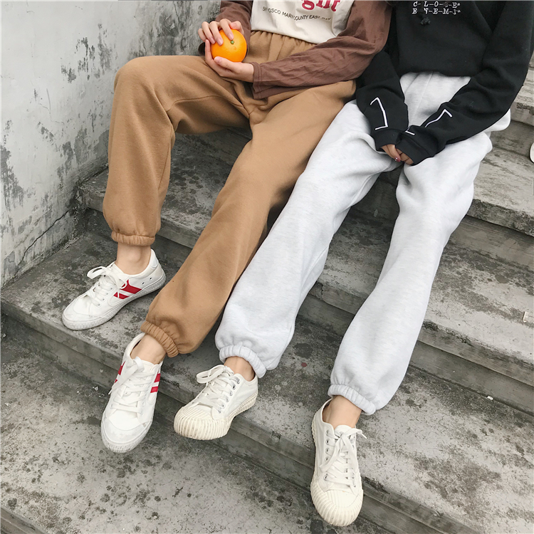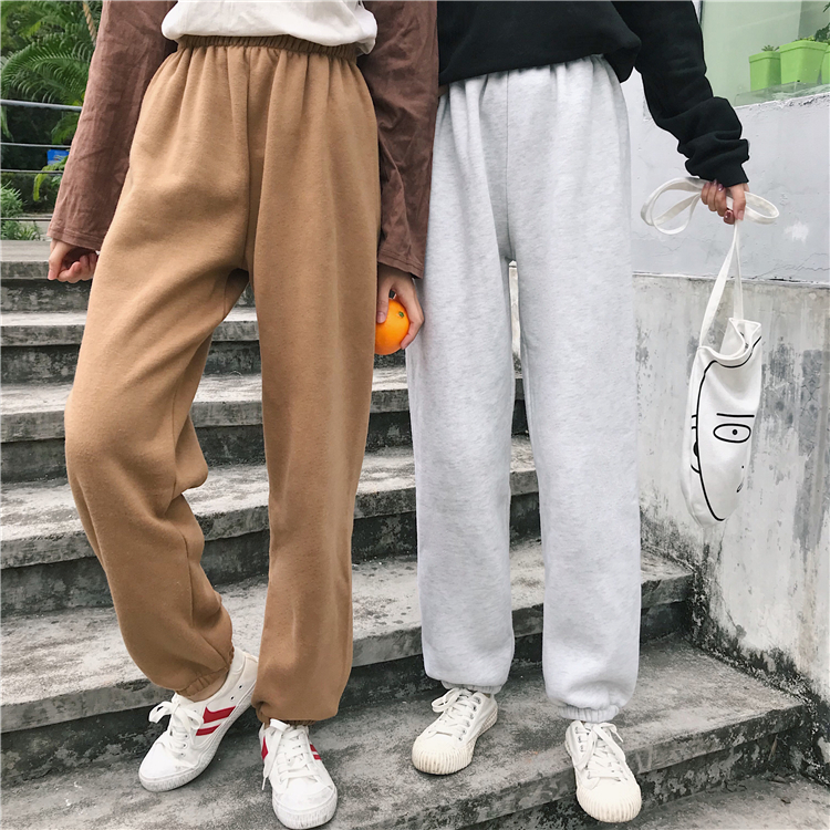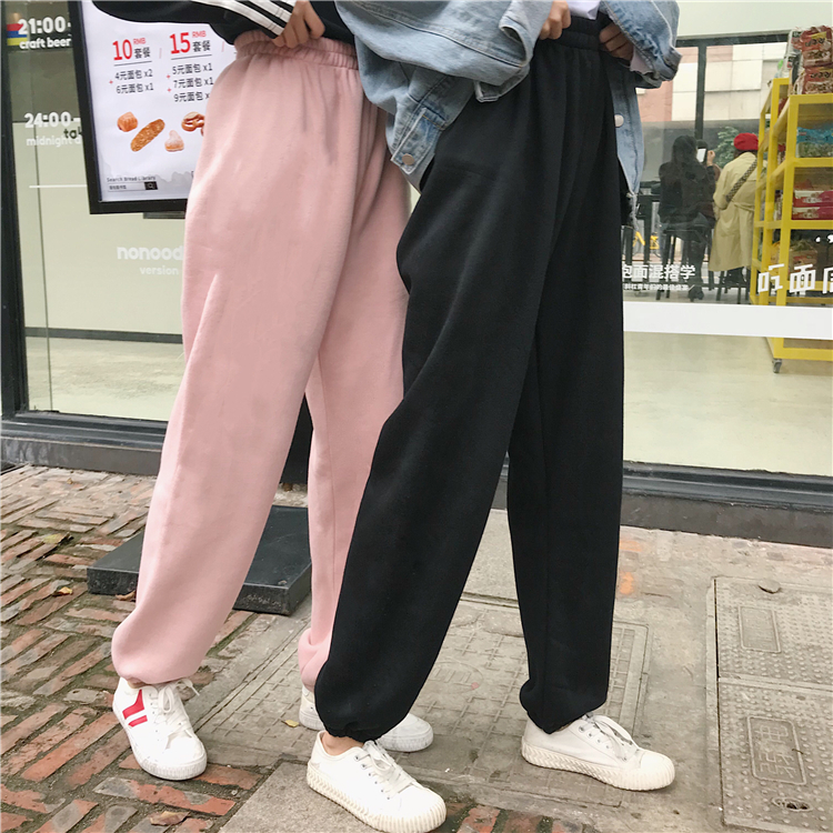 / 秋冬女裝韓版松緊腰哈倫褲寬松加絨加厚休閑褲闊腿褲長褲學生褲子