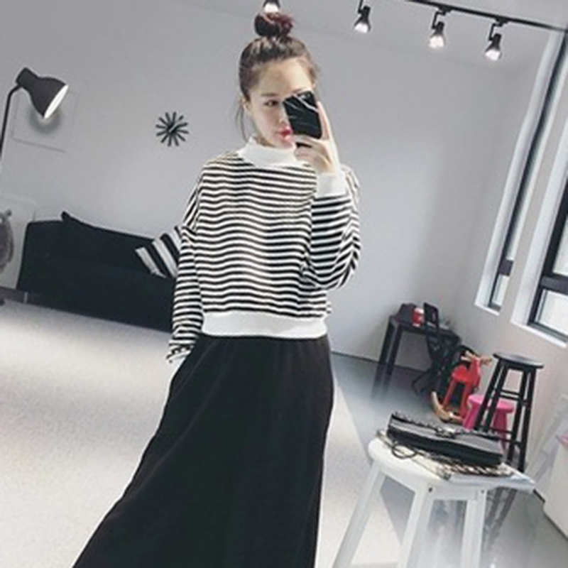 / 衛衣2018新款女長袖 韓版 寬松顯瘦高領黑白條紋加絨衛衣冷系女裝