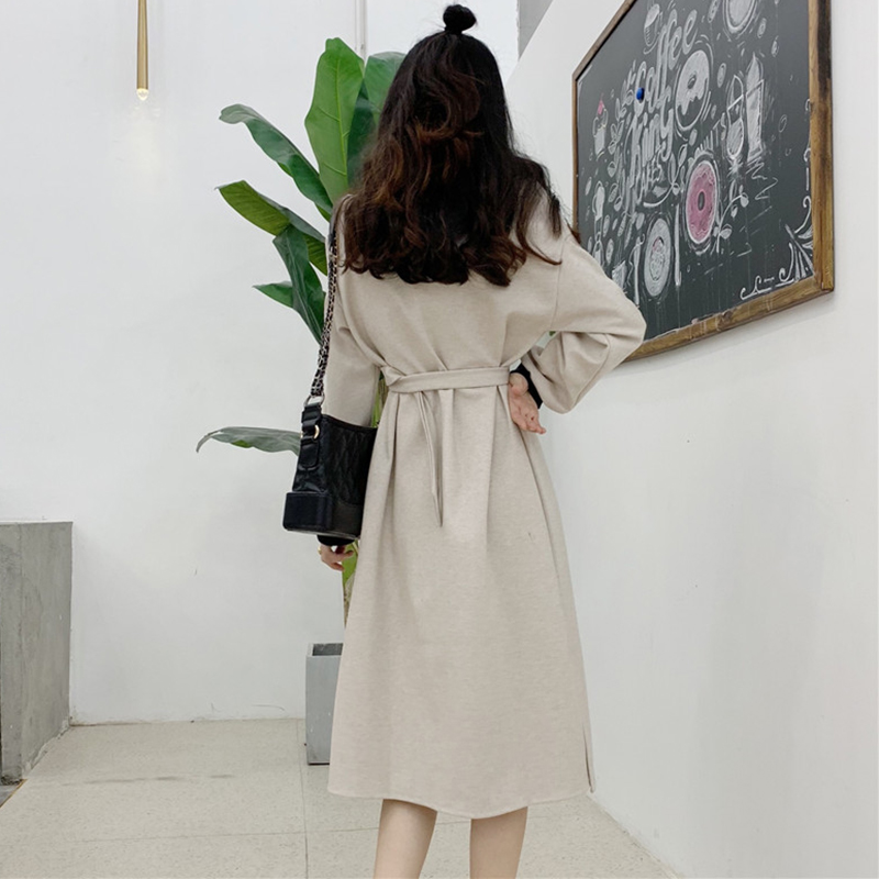 / 復古風收腰顯瘦毛呢連衣裙子女秋冬裝新款開叉氣質長袖egg中長裙