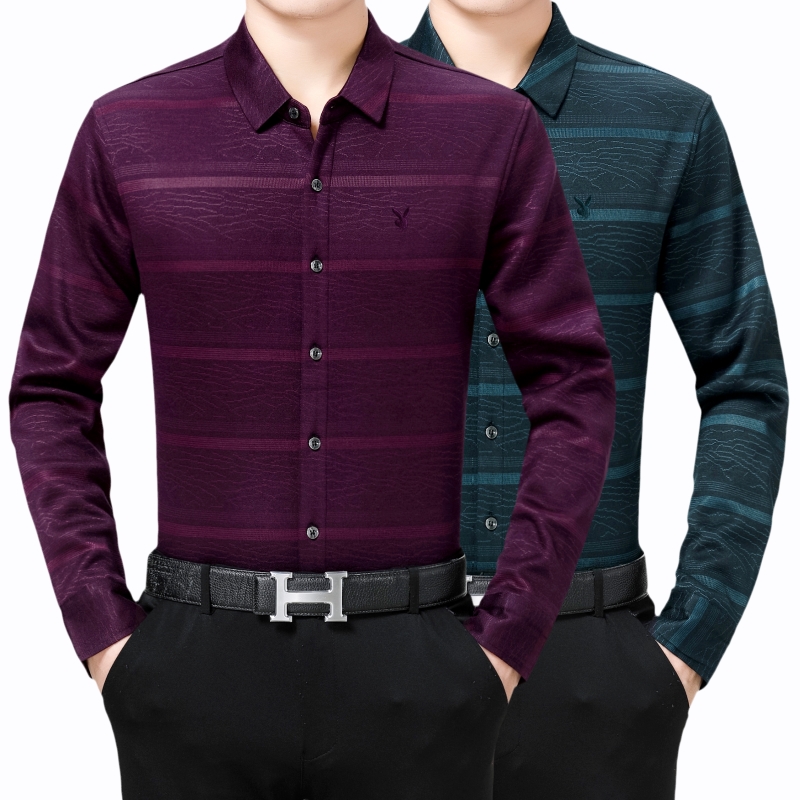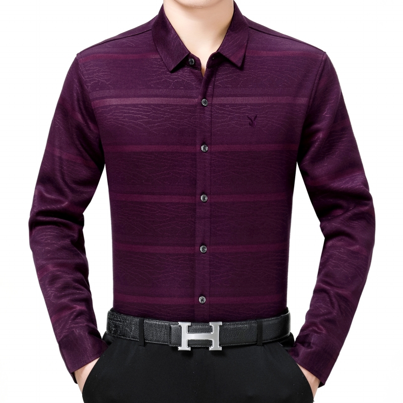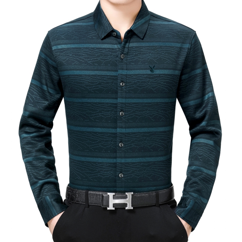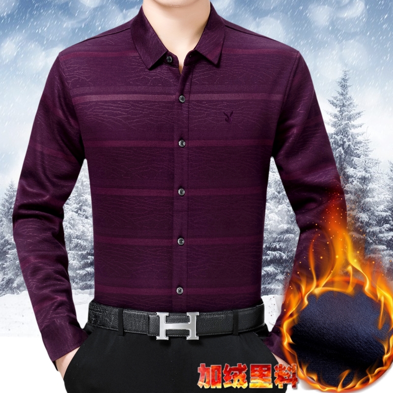 花花公子正品中年男士長袖羊絨保暖襯衫商務男裝加絨加厚條紋襯衣