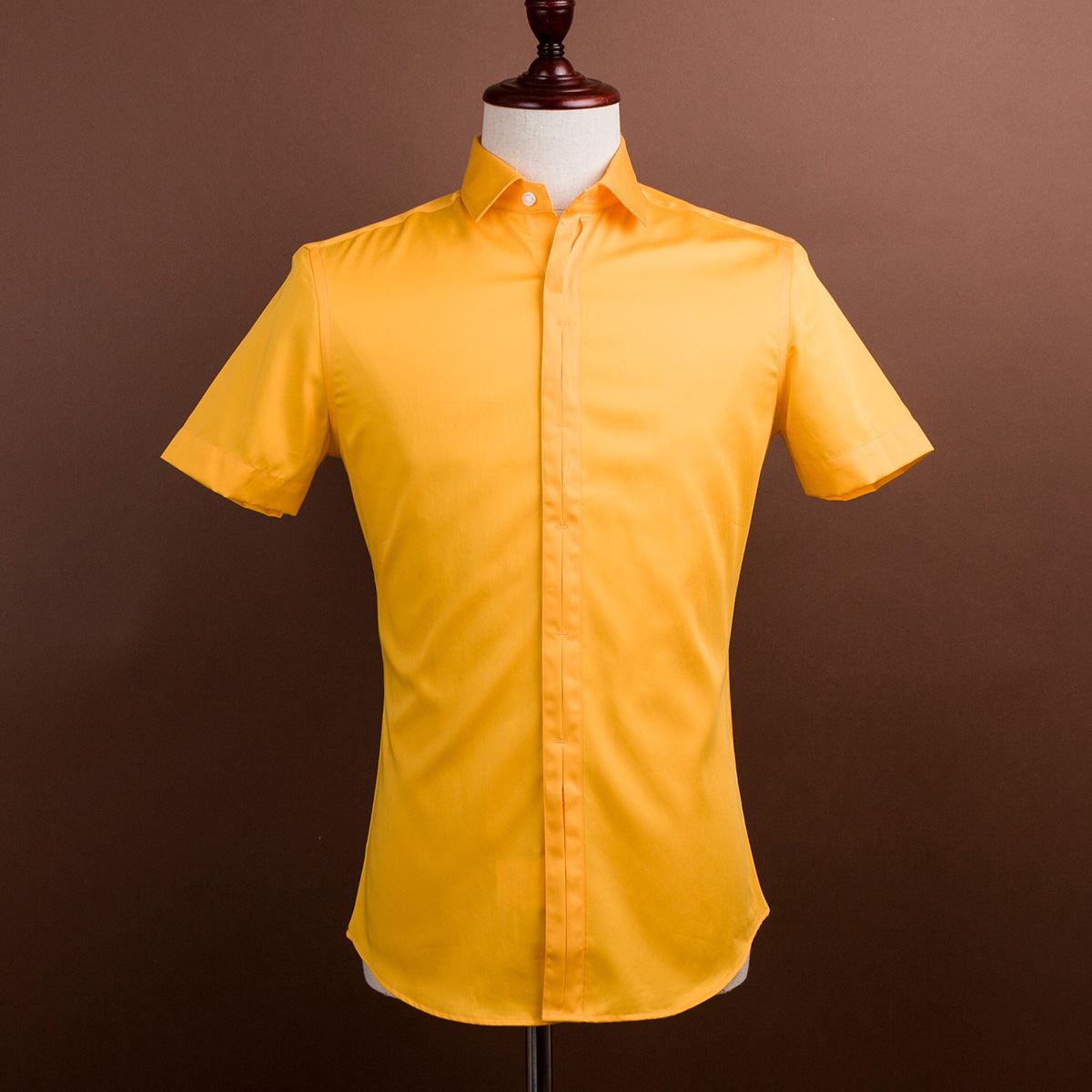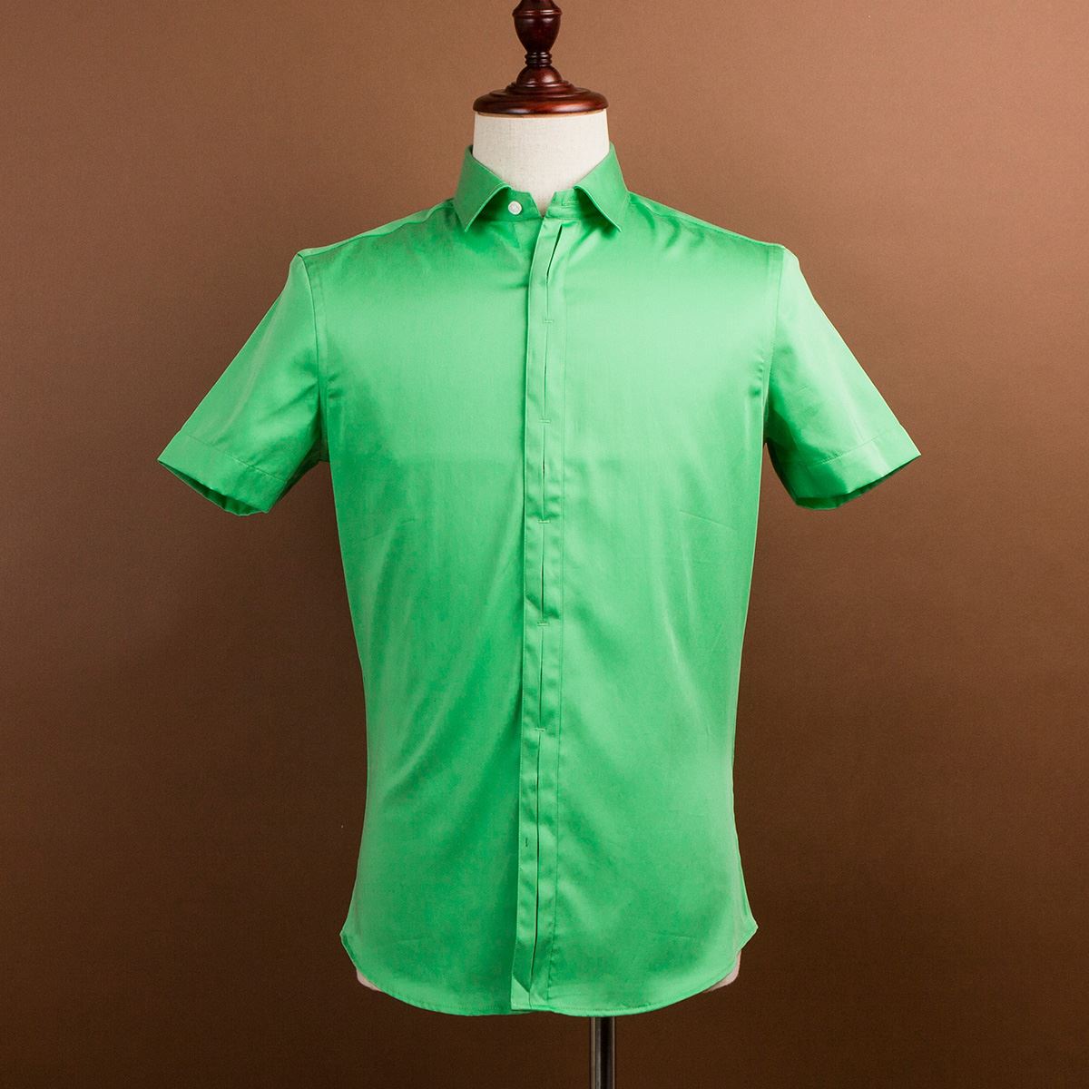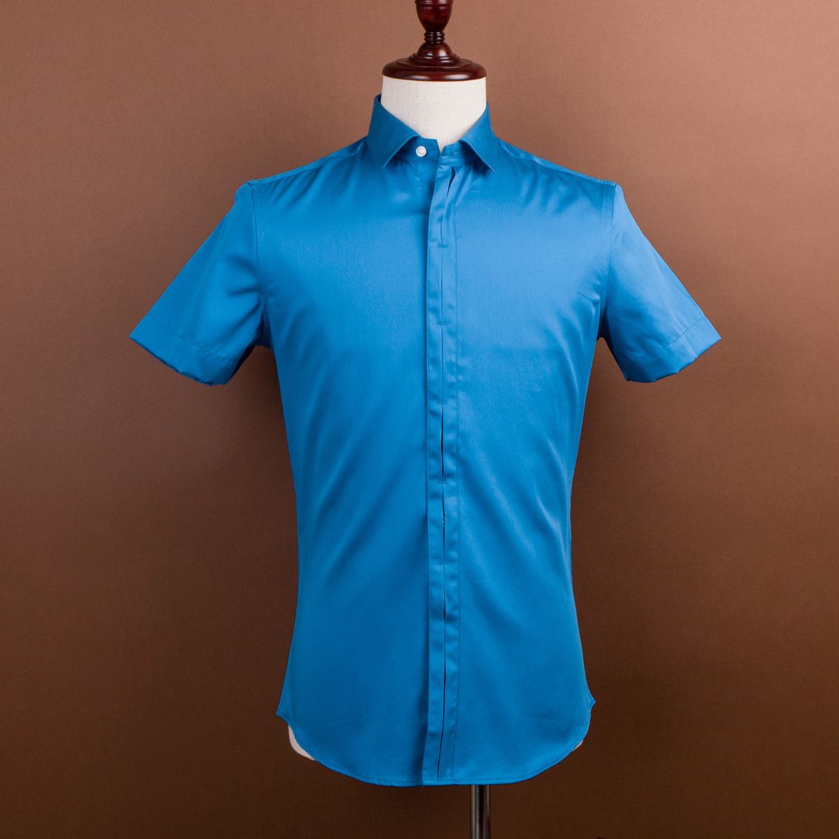 / 夏季新品短袖襯衫男海登純棉時尚修身款男裝純色絲光棉個性襯衣