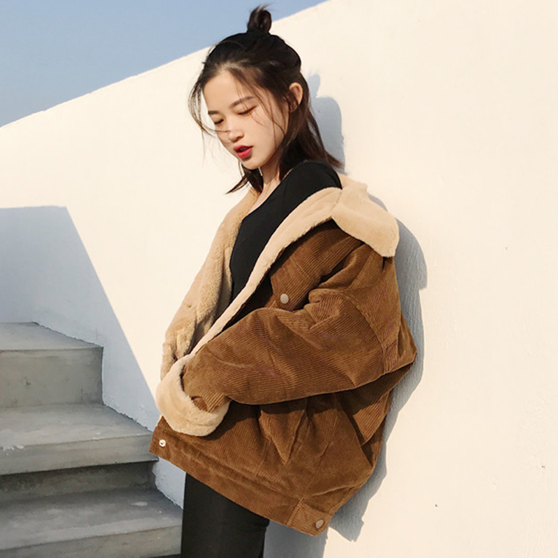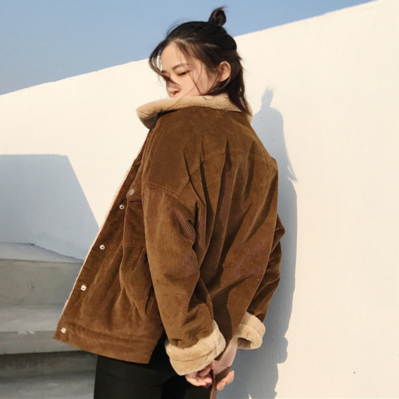 復古燈芯絨外套秋冬2018新款女裝港味寬松長袖上衣休閑簡約夾克潮