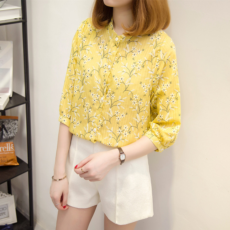 夏裝新款女裝寬松碎花白襯衣女夏季小清新上衣韓版雪紡襯衫女