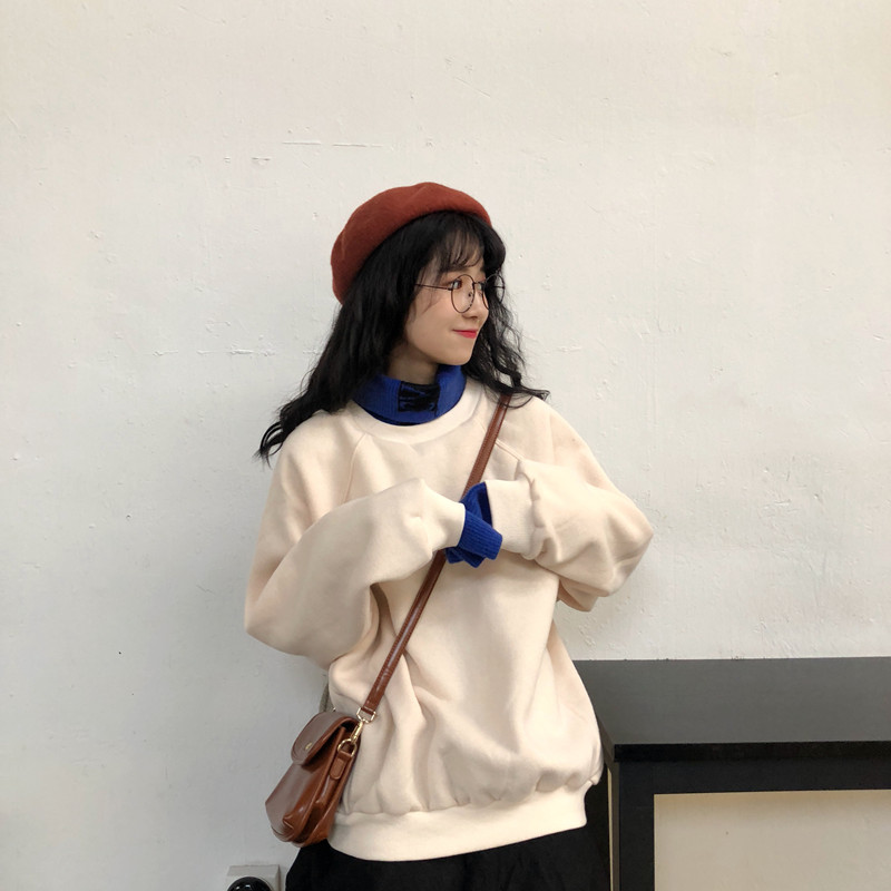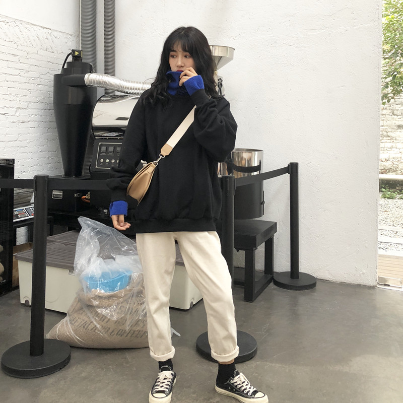 / 秋冬女裝2018新款韓版中長款原宿風加絨寬松拼接高領超火衛衣外套