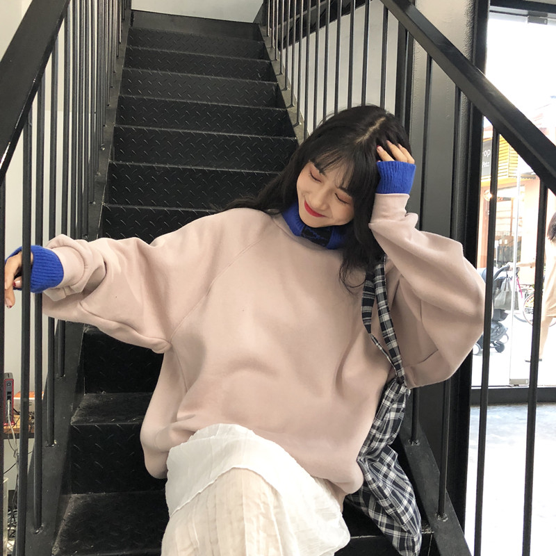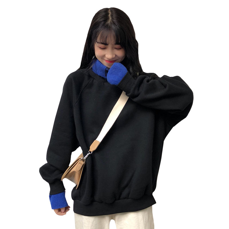 秋冬女裝2018新款韓版中長款原宿風加絨寬松拼接高領超火衛衣外套