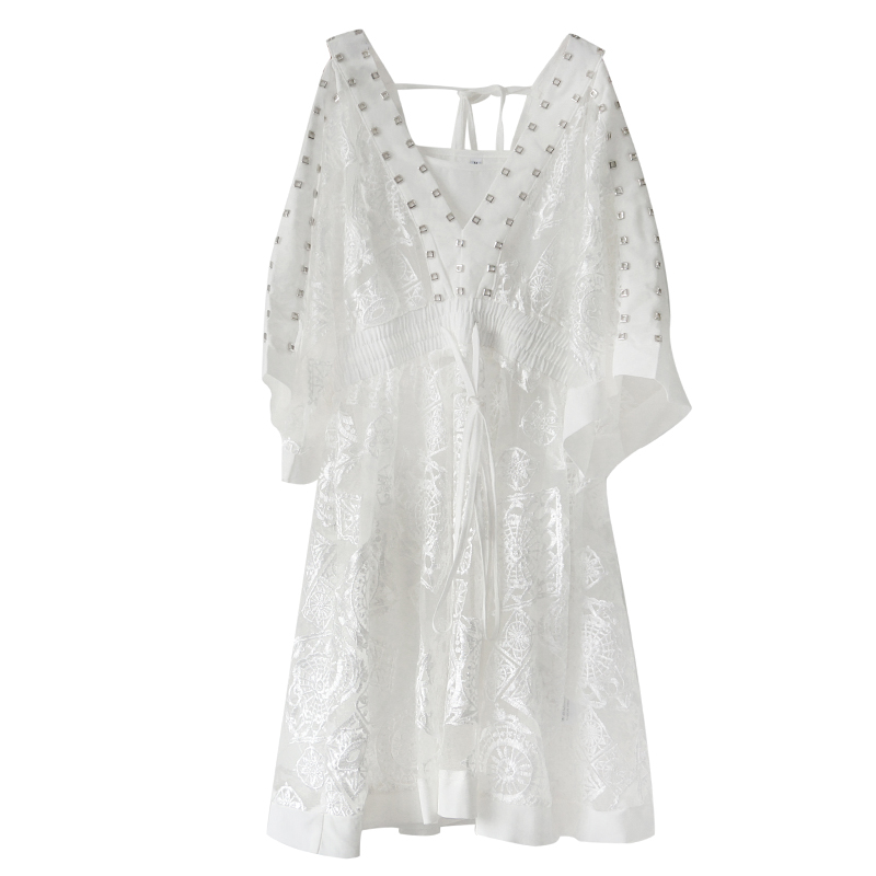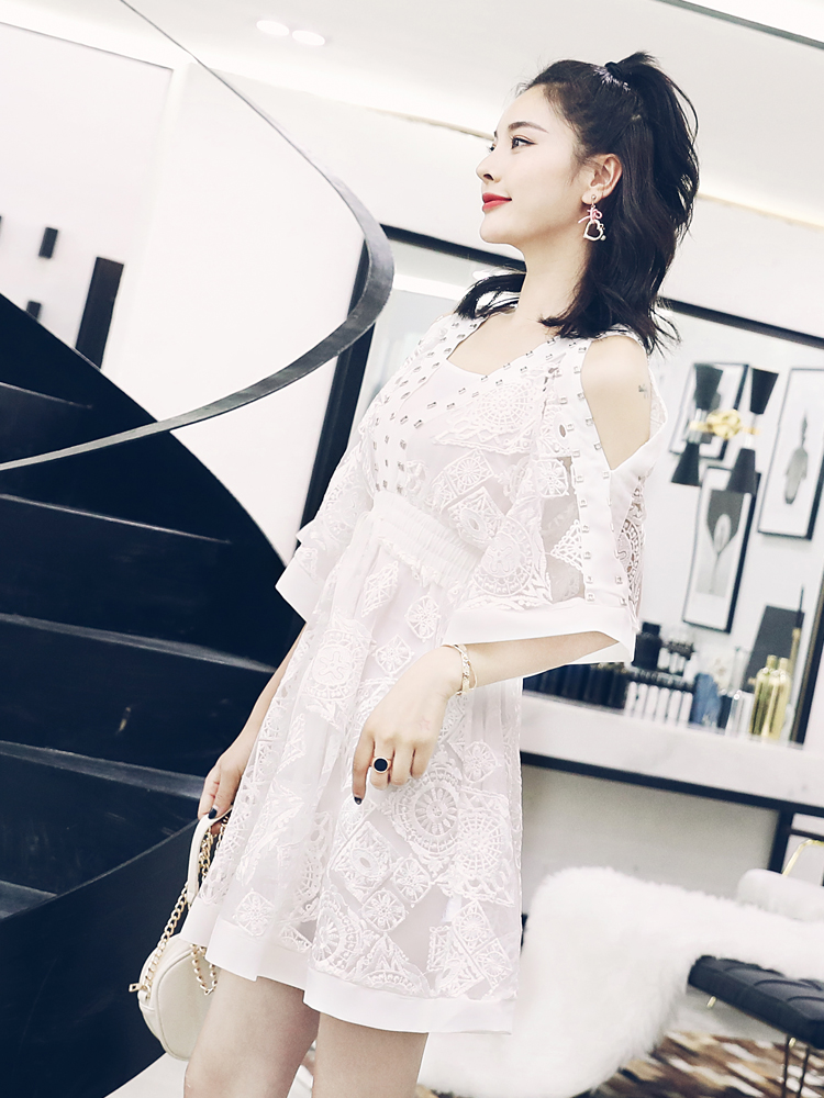 / S秀甜美名媛裙子白色網紗釘珠連衣裙修身顯瘦A字裙2018夏季新款