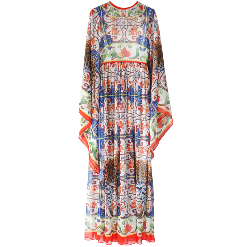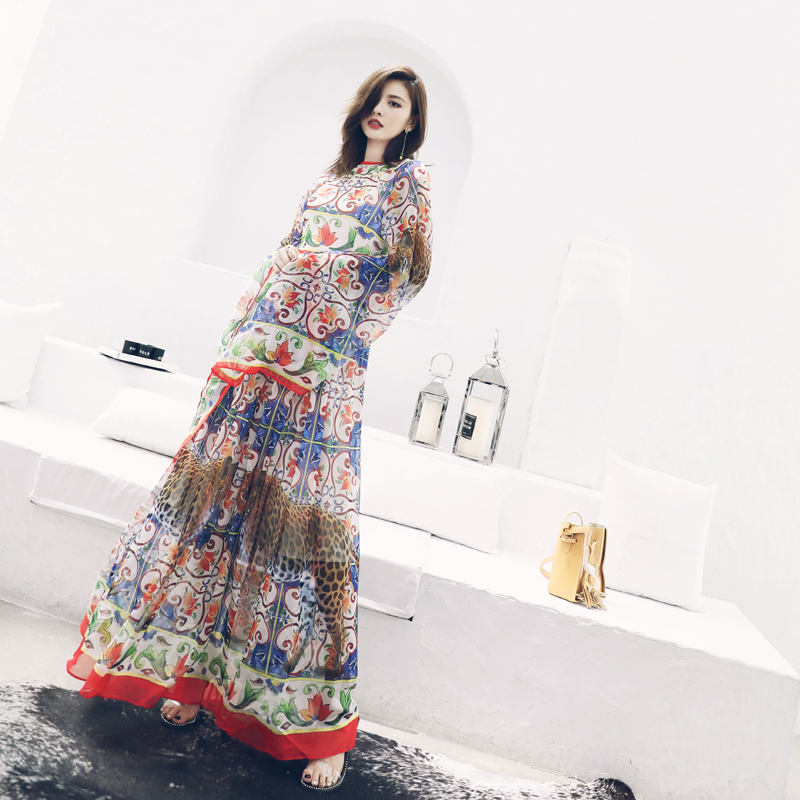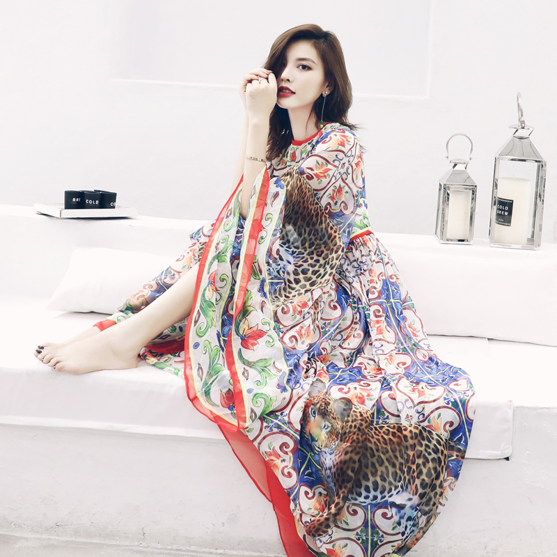 / 氣質雪紡復古印花溫柔超仙女海邊度假裙子長款連衣裙女夏2018新款