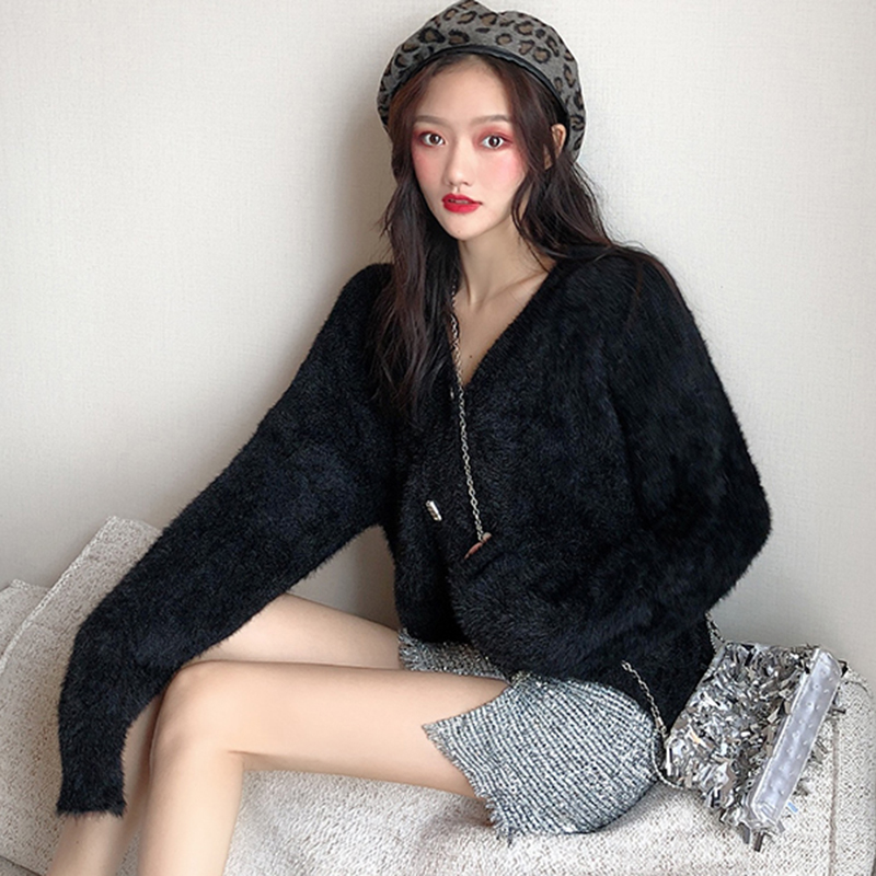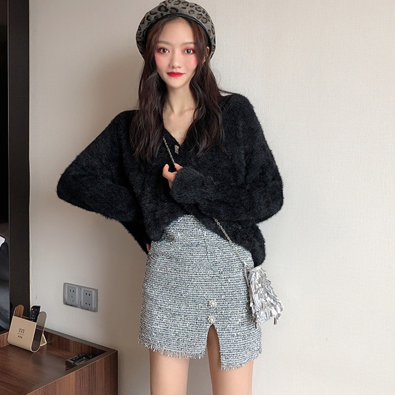 / 女神套裝秋2018新款慵懶毛衣外套長袖毛絨開衫高腰開叉銀絲半身裙
