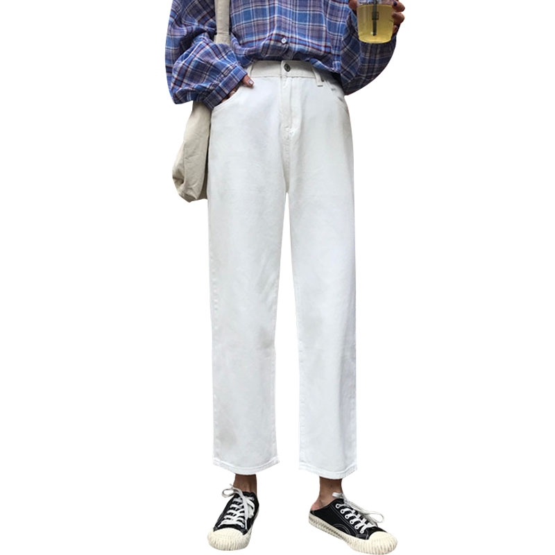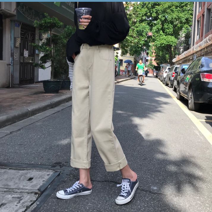 秋裝女裝韓版復古高腰顯瘦牛仔褲寬松百搭闊腿褲直筒褲九分褲學生