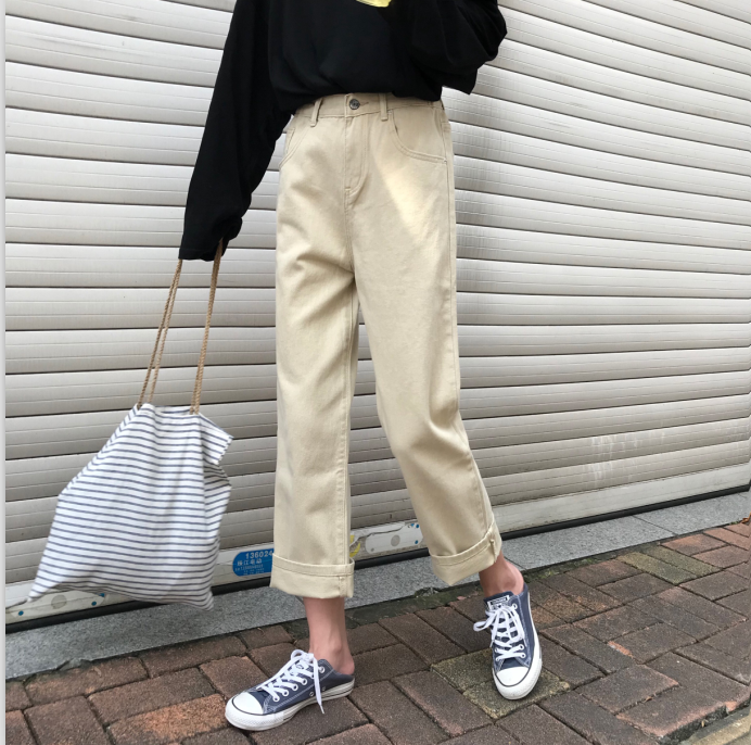 / 秋裝女裝韓版復古高腰顯瘦牛仔褲寬松百搭闊腿褲直筒褲九分褲學生