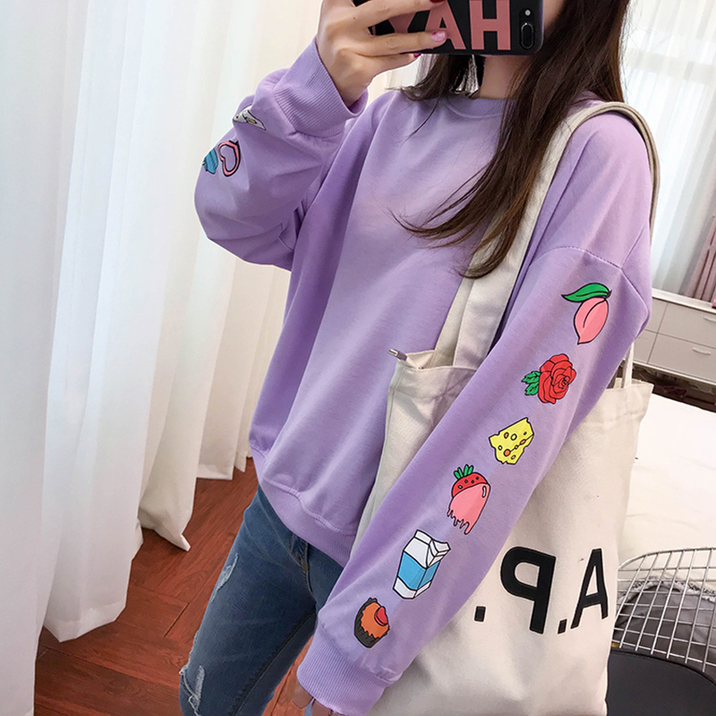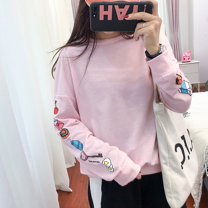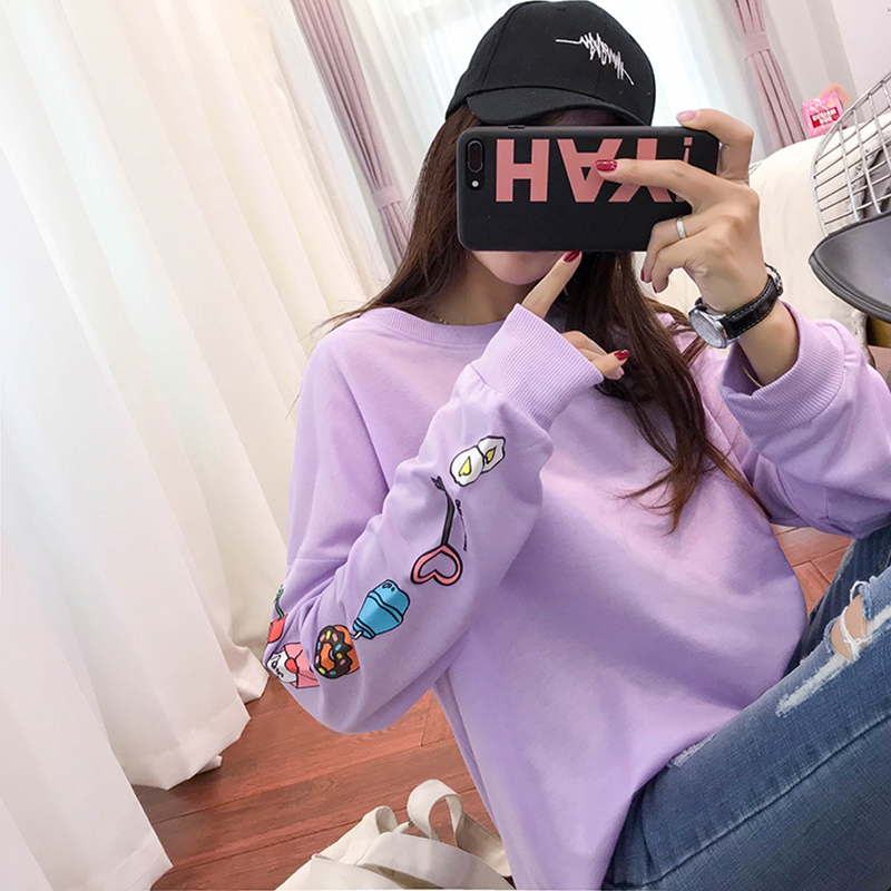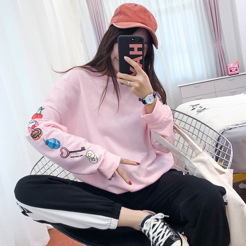 可愛少女薄款套頭衛衣冬裝2018新款韓版學生寬松卡通圖案上衣外套