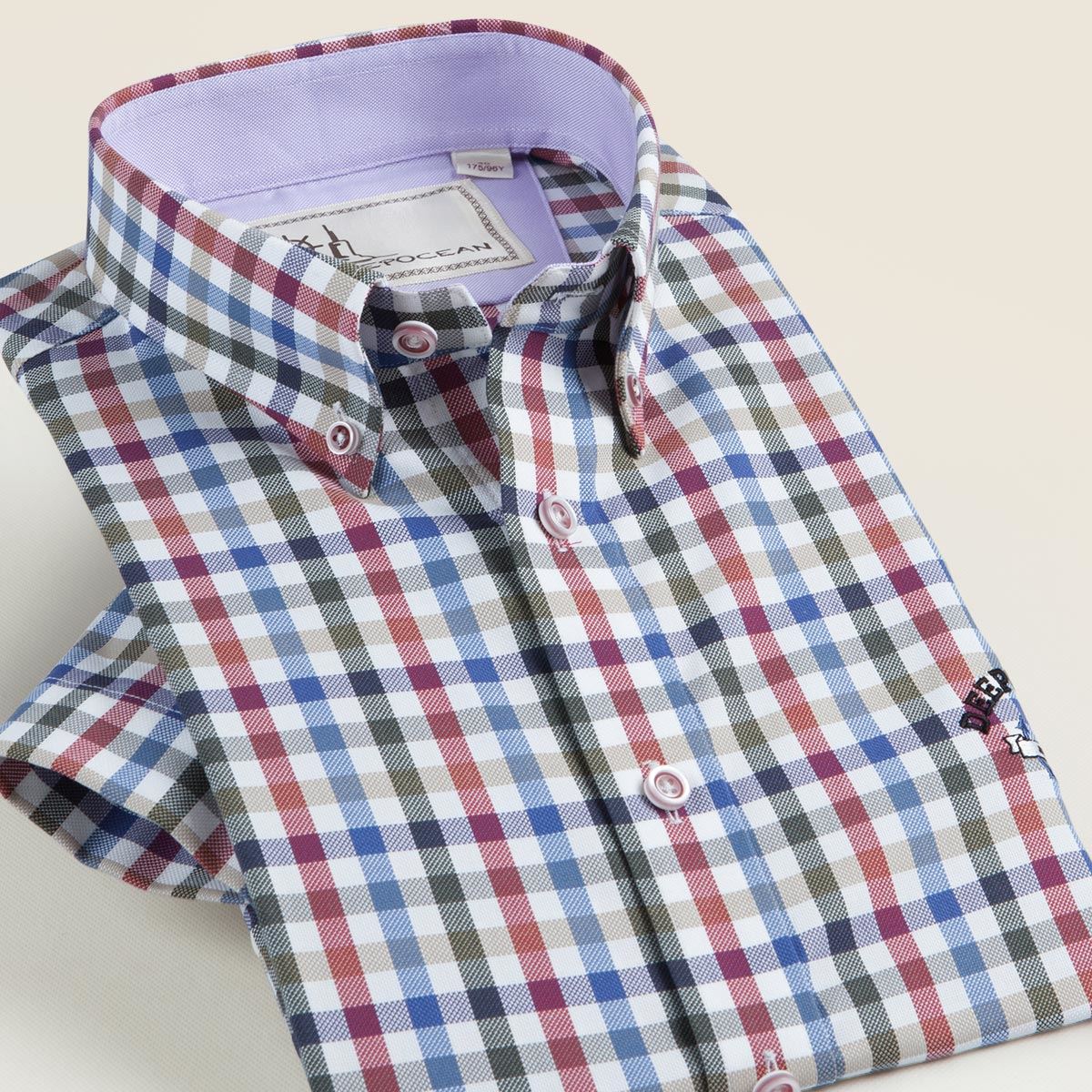 新夏季深海男士短袖襯衫牛津紡格子男裝休閑襯衣純棉免燙韓版