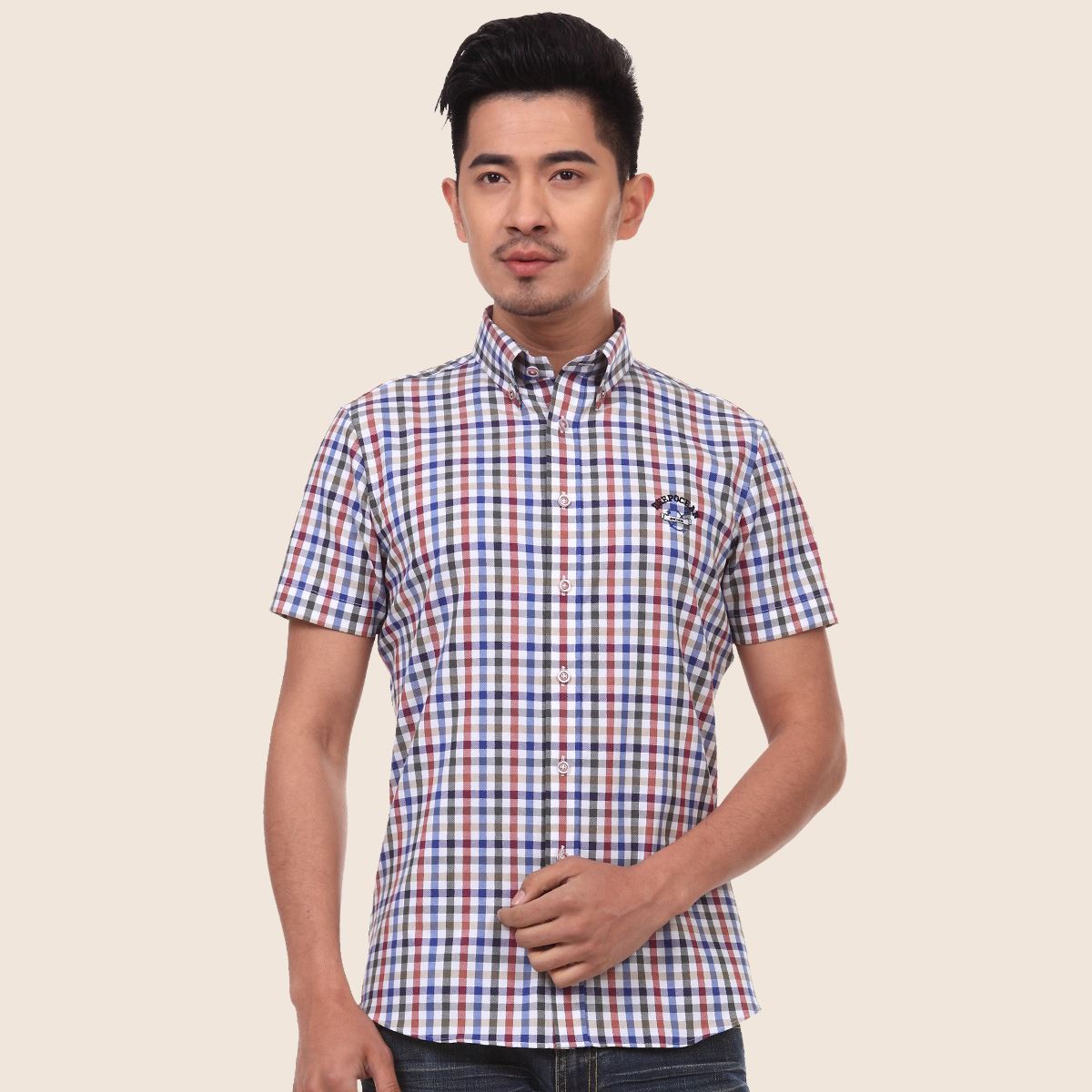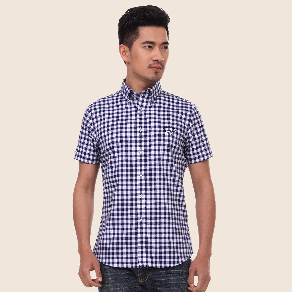 / 新夏季深海男士短袖襯衫牛津紡格子男裝休閑襯衣純棉免燙韓版
