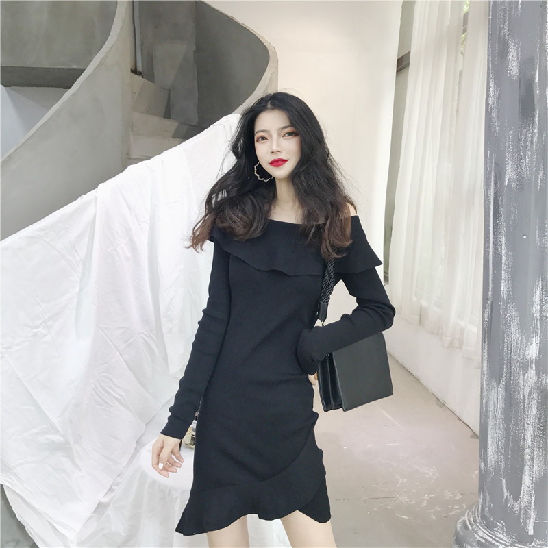 / 晚晚風2018新款秋裝性感顯瘦不規則邊短裙chic修身長袖針織連衣裙