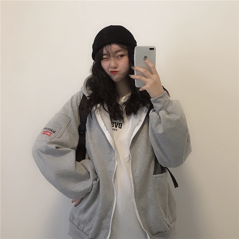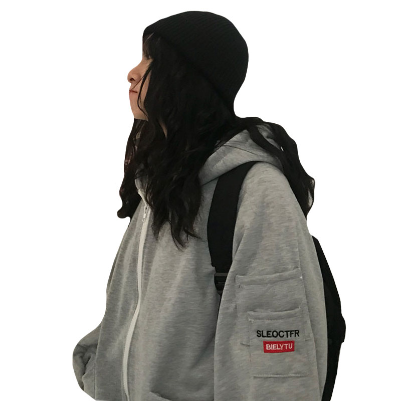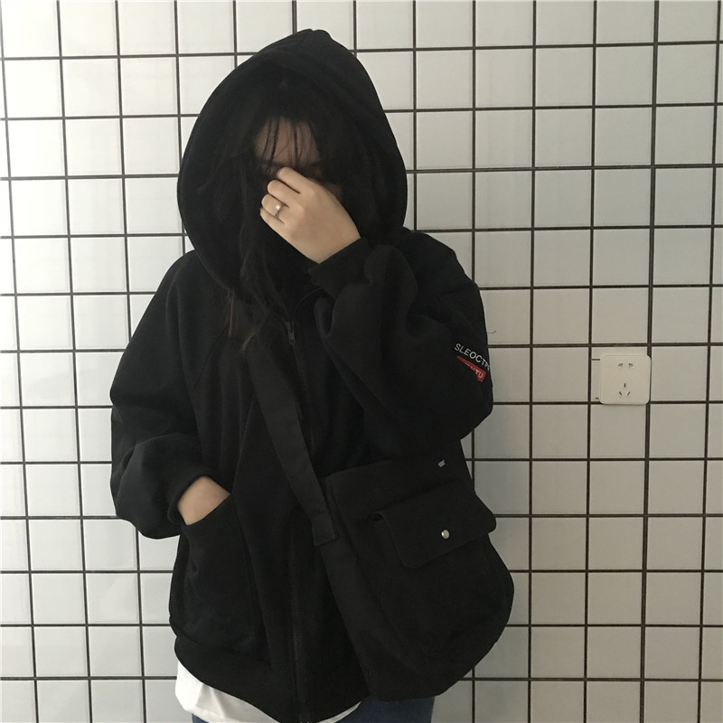 秋冬女裝韓版BF風寬松字母繡花加絨加厚連帽超火衛衣開衫上衣外套