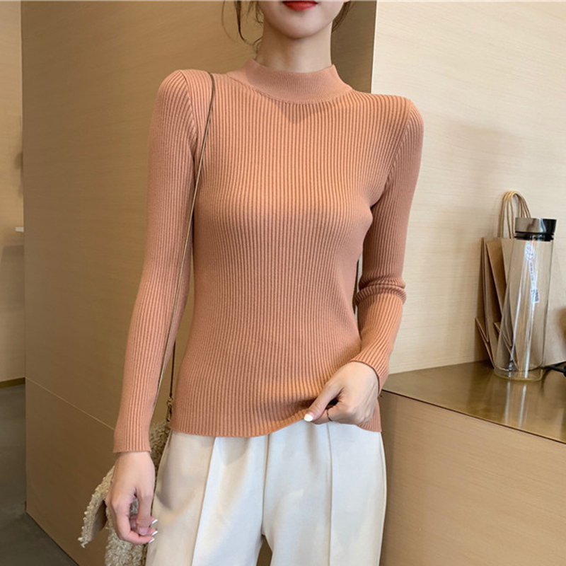 / 半高領長袖打底針織衫女秋冬裝新款學生修身顯瘦黑色外穿套頭上衣