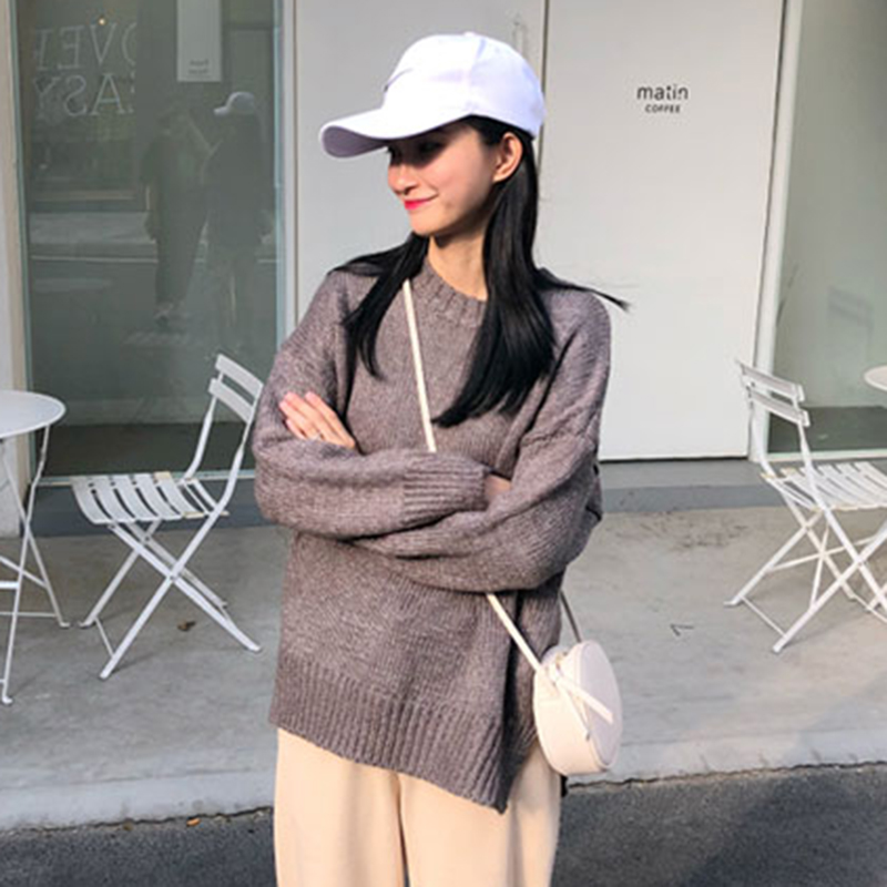 / 純色慵懶寬松毛衣女秋冬裝2018新款學生針織外套復古長袖圓領上衣