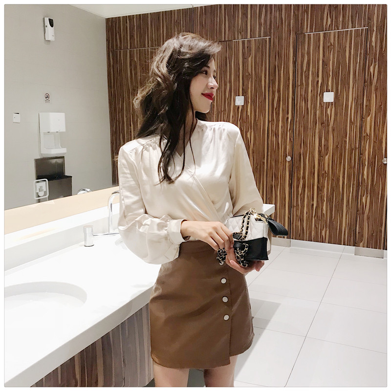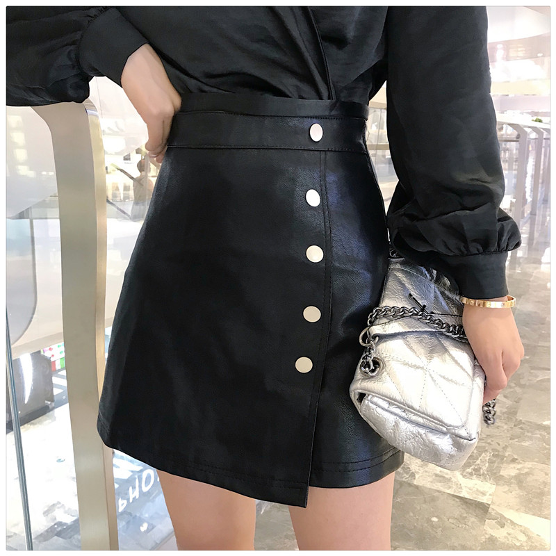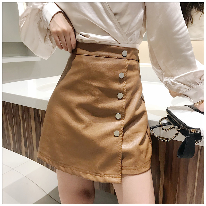/ 2018秋裝新款pu皮裙女顯瘦氣質時尚短裙設計感高腰不規則半身裙潮
