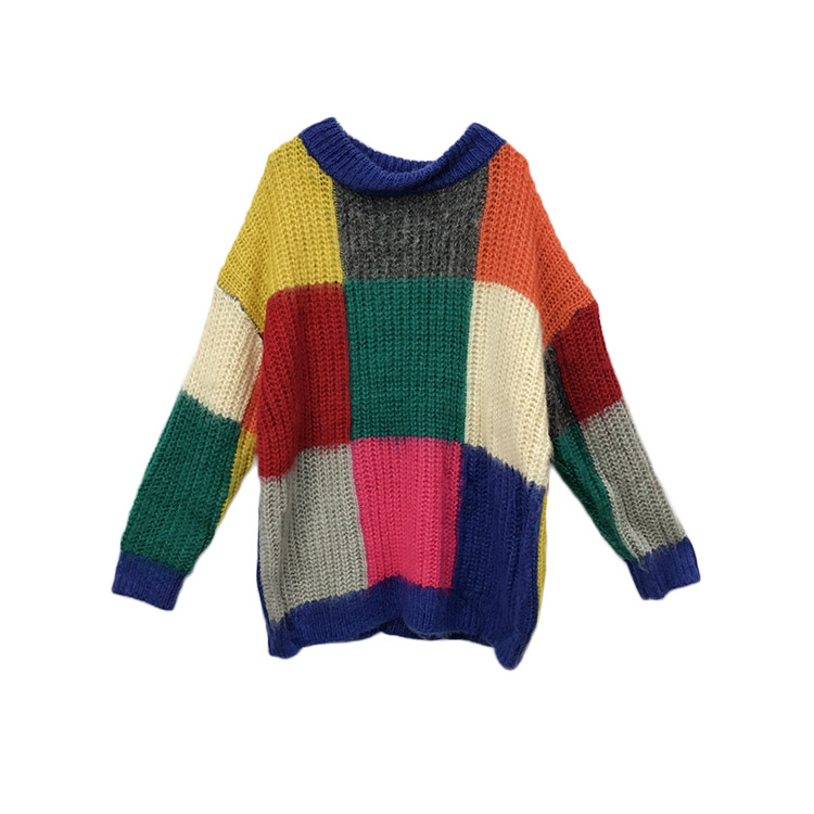 慵懶加厚彩虹撞色格子網紅毛衣女2018新款時尚百搭套頭針織毛線衫