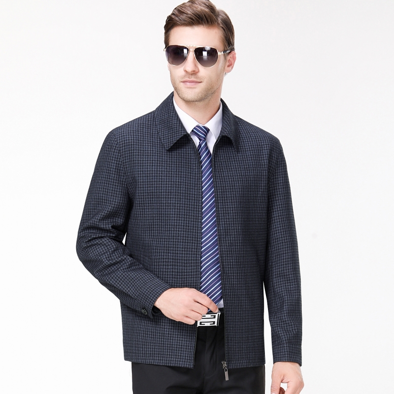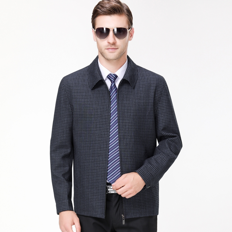 / 新款秋裝品牌中老年男夾克商務休閑男爸爸裝領導同款翻領格子外套
