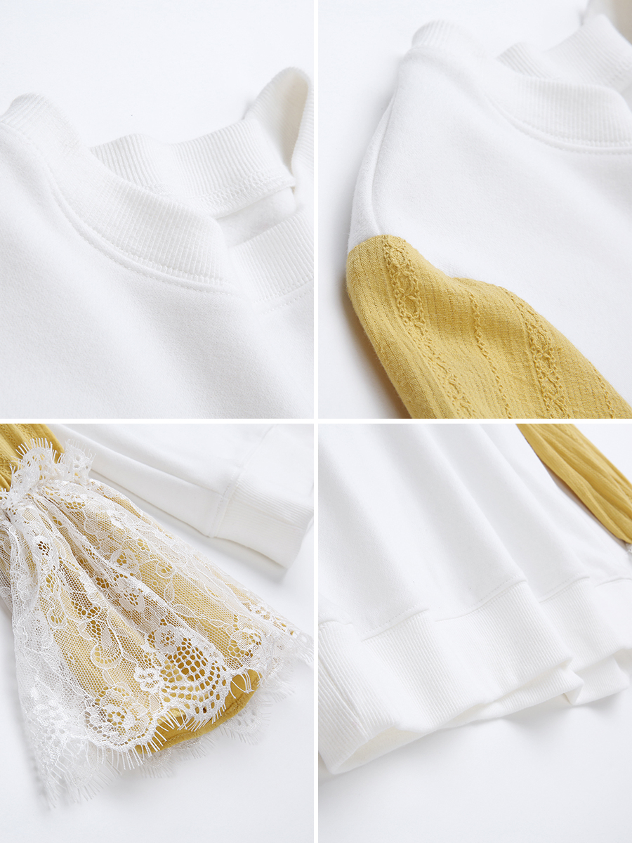 MG小象拼接白色衛衣女長袖寬松秋冬2018新款休閑甜美小清新上衣潮