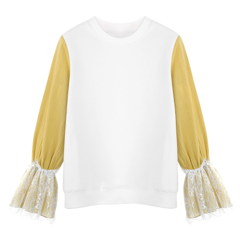 / MG小象拼接白色衛衣女長袖寬松秋冬2018新款休閑甜美小清新上衣潮
