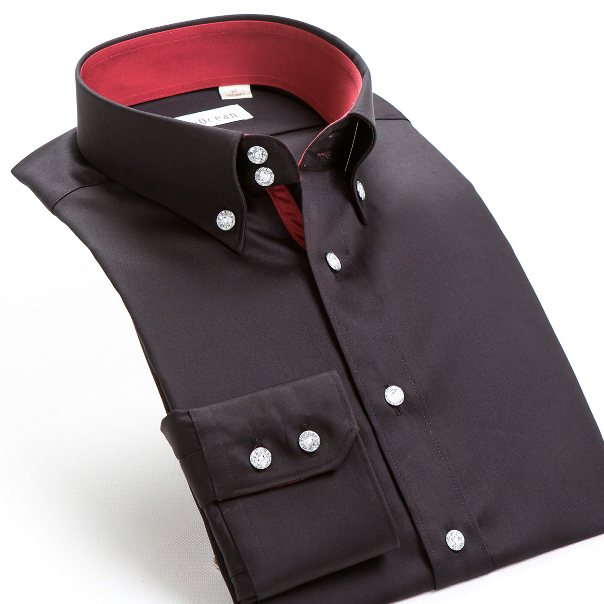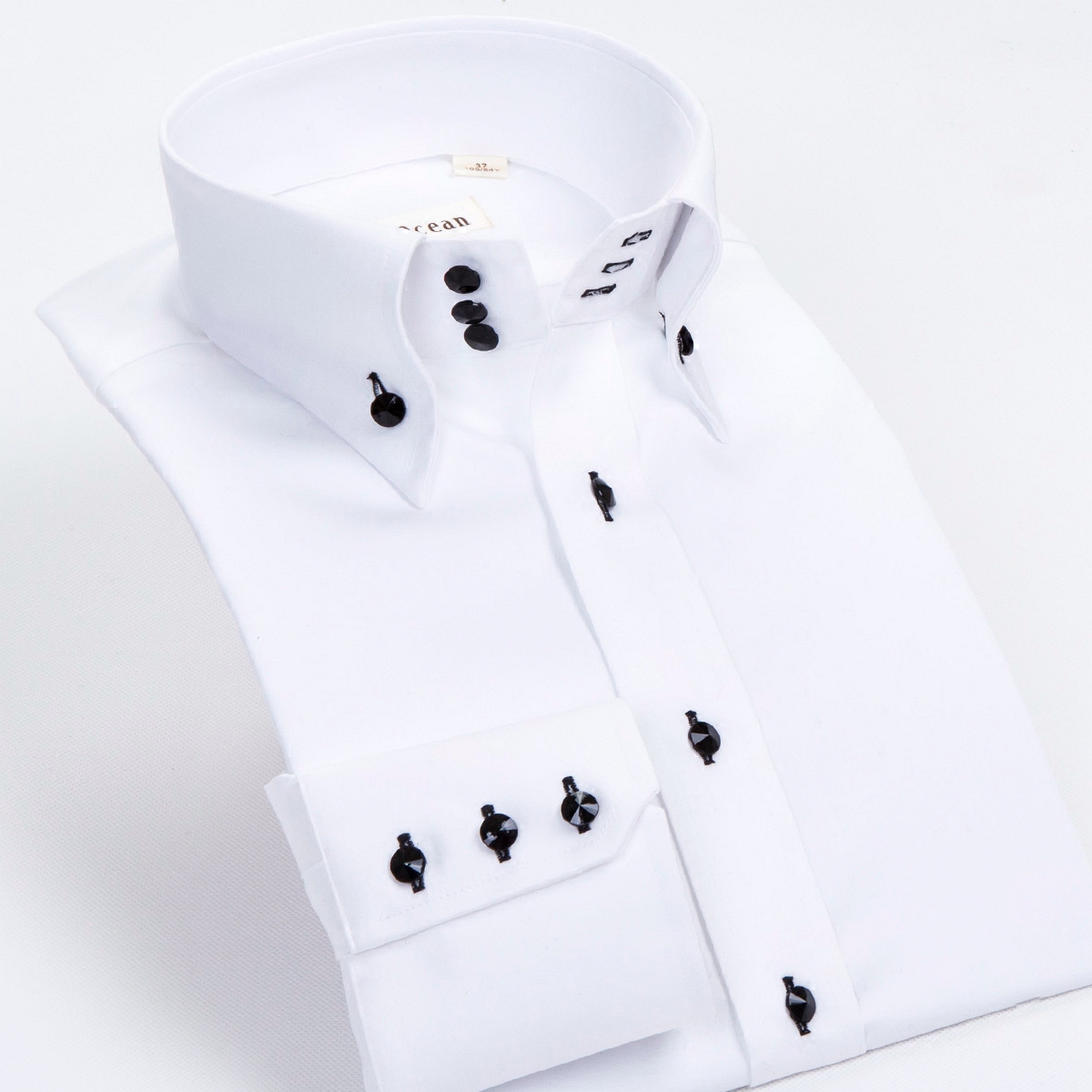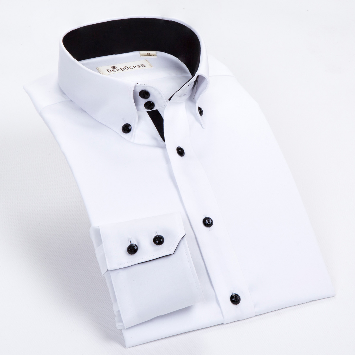 / 白色襯衫男長袖男士高領絲光棉韓版修身免燙襯衣深海休閑商務秋裝