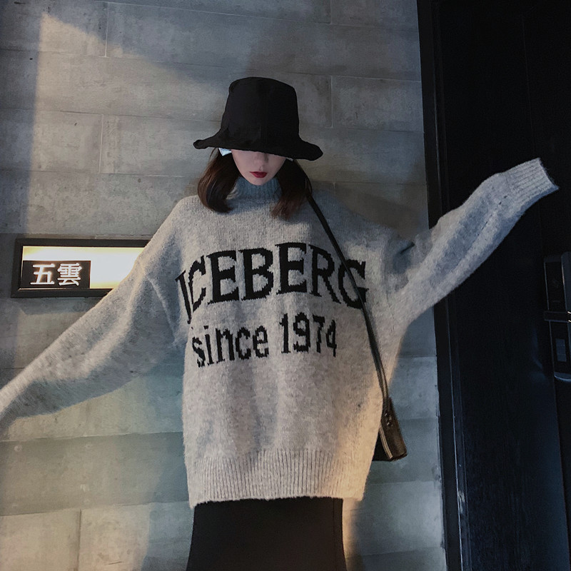 / 韓版寬松加厚半高領字母毛衣女秋冬2018新款+百搭高腰魚尾半身裙
