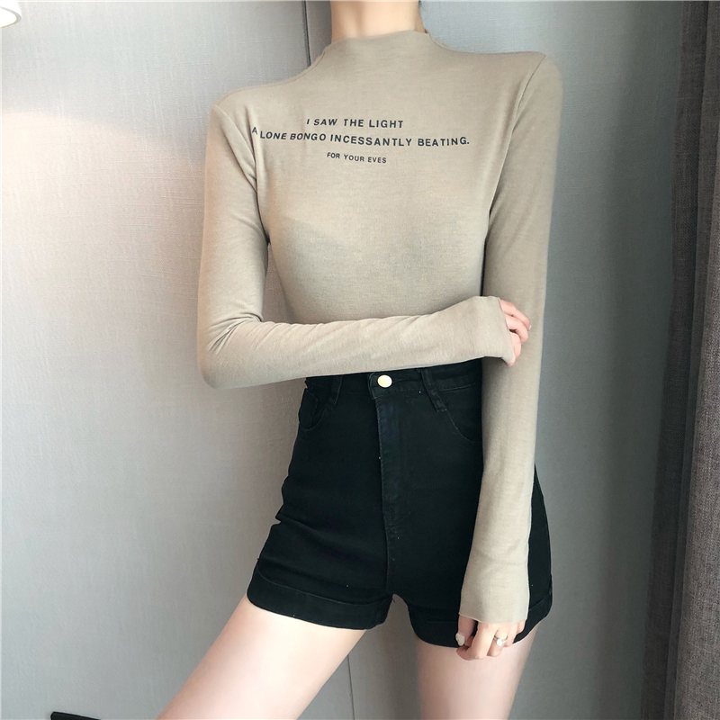 / 冷系女裝T恤打底衫秋裝新款小高領長袖體恤港味復古修身字母上衣