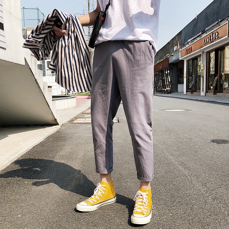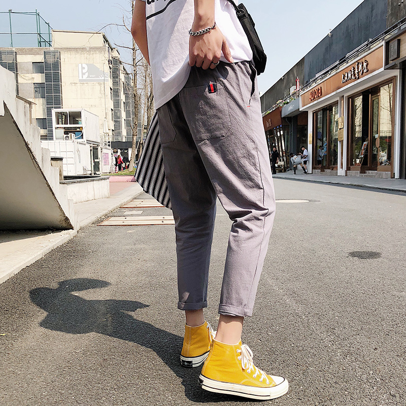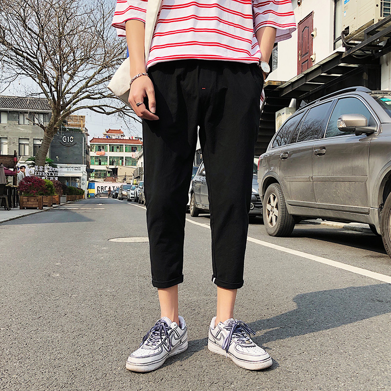 / 秋季褲子九分褲韓版潮流修身男士小腳褲港風運動褲百搭文藝休閑褲