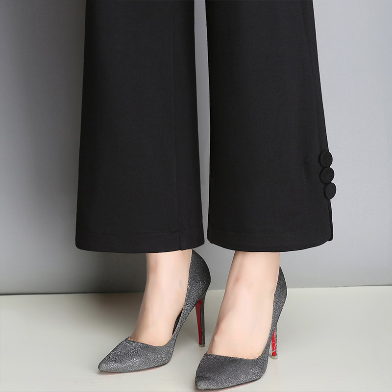 / 闊腿褲女夏季薄款高腰西裝九分褲寬松顯瘦黑色七分直筒褲韓版
