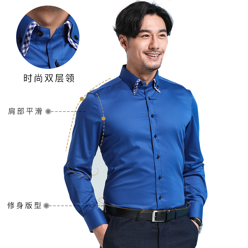 純棉免燙抗皺襯衫男長袖修身韓版男式襯衣潮流帥氣商務休閑