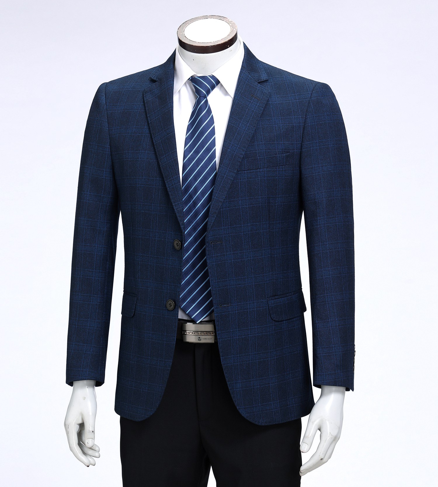 / 春裝新款品牌中年男西服商務休閑男裝羊毛格子單件西裝外套男上衣