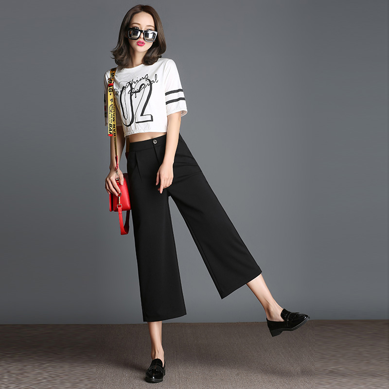 七分闊腿褲夏女高腰韓版學生顯瘦春裝新款直筒西裝褲九分褲子